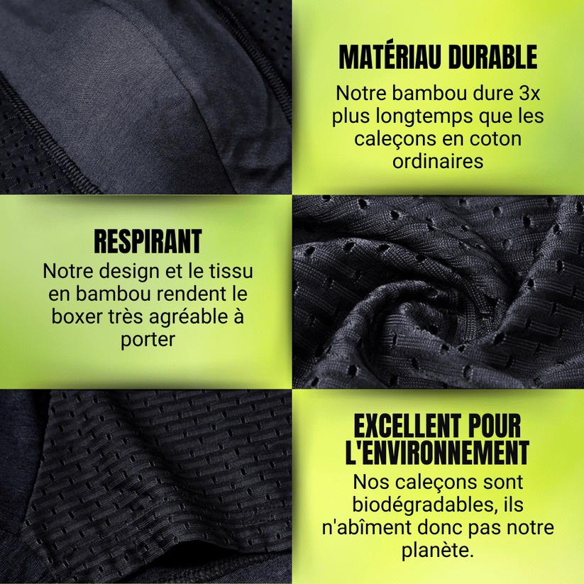 DURABILITÉ AMÉLIORÉE Conçu avec des matériaux de haute qualité qui préviennent l'étirement, l'usure et les déchirures. Peut durer jusqu'à 3 fois plus longtemps qu'un caleçon ordinaire.